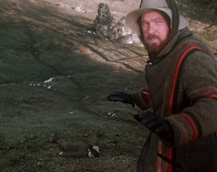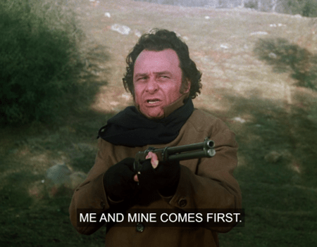 Garth, who wears an interesting coat possibly made of the same material as his face, tells his shorter brother Virgil they need to sell the meat of the animals or they’ll be ruined.