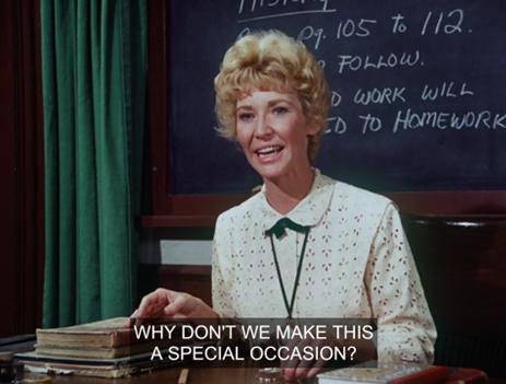 At the time this episode aired, my ten-year-old self just assumed she had to take a special exam in order to graduate because she had cheated on all those exams in Mrs. Garvey’s class.