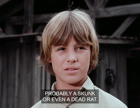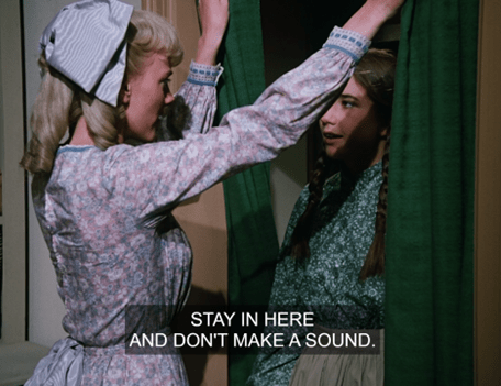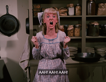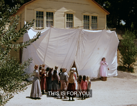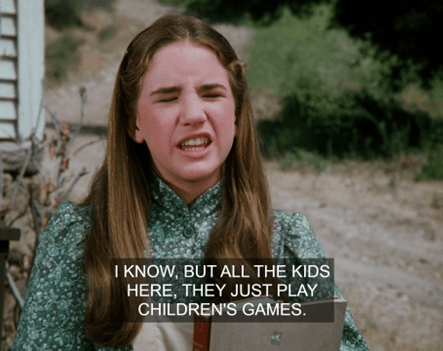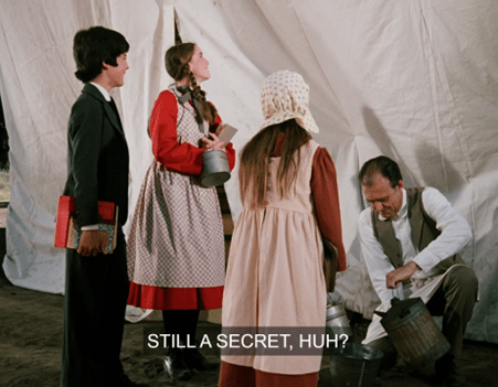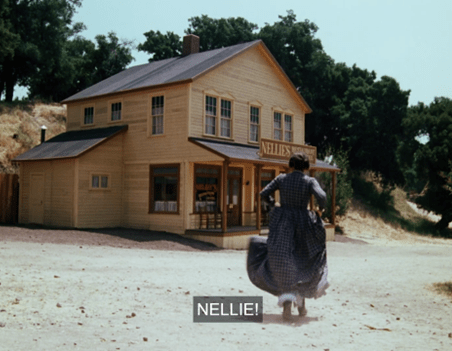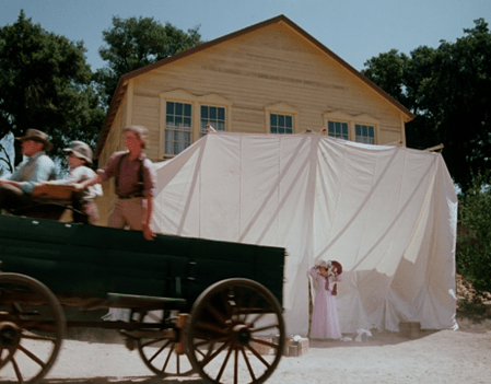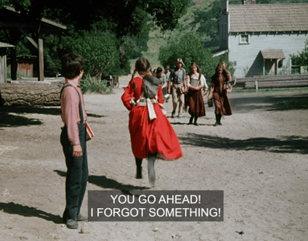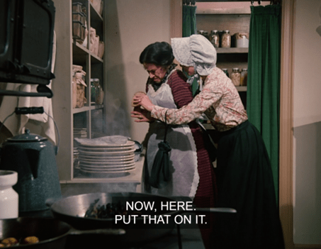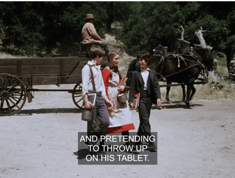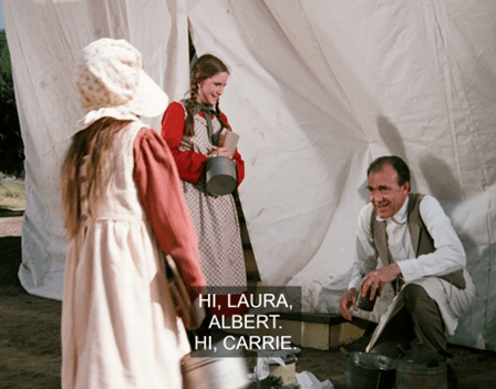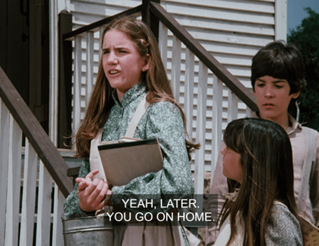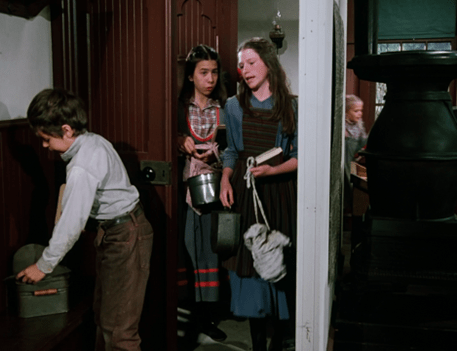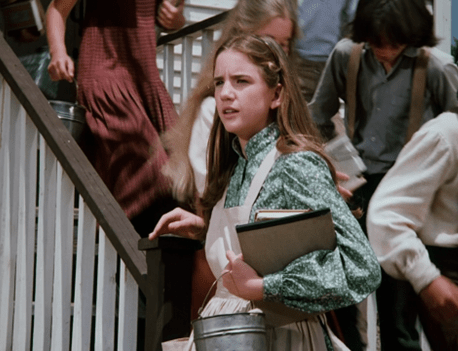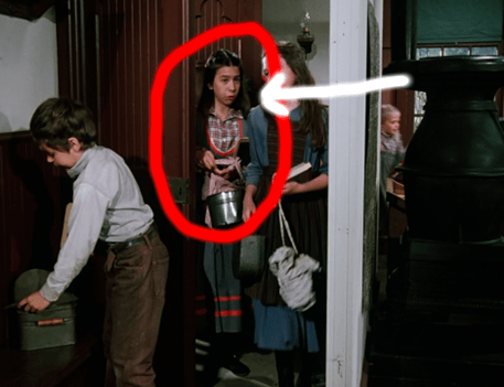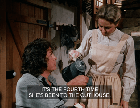 What I mean is that here, we don’t just see Carrie running to the privy. We see Carrie running to the privy IN THAT CLASSIC WAY SHE ALWAYS DOES ON LITTLE HOUSE ON THE PRAIRIE.