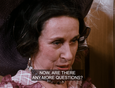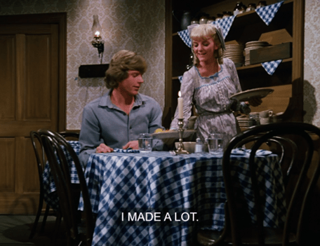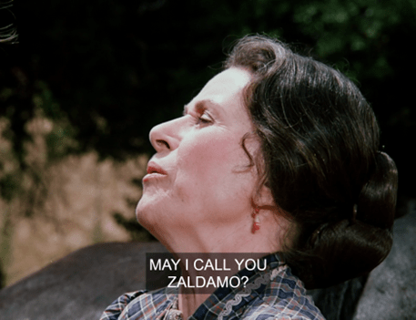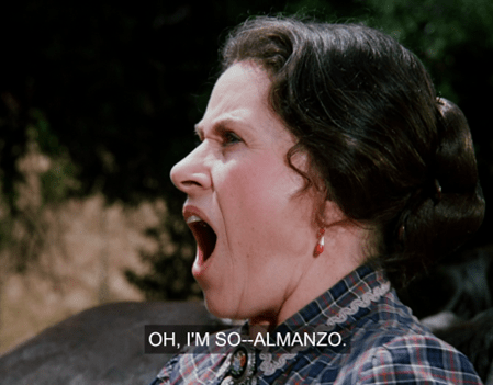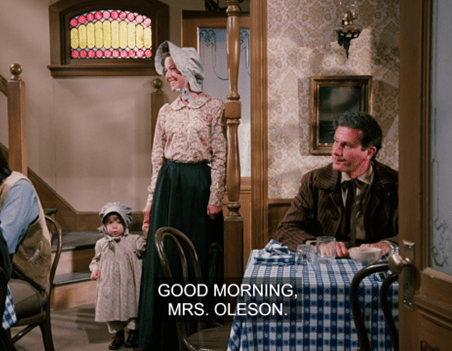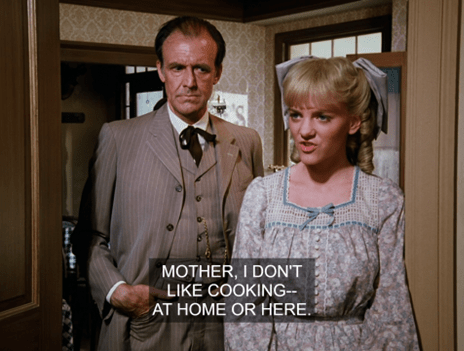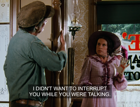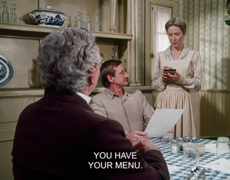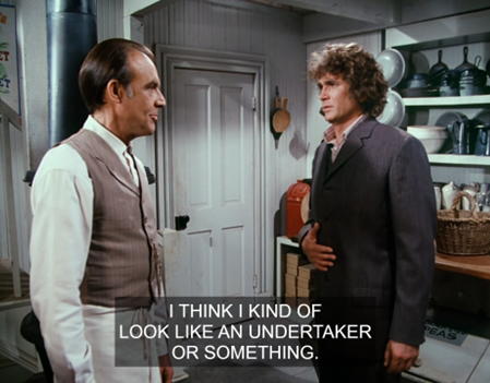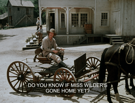 In another immortal moment, then, Mrs. Oleson says, “What is your favorite dish, Mr. Wilder?”, then interrupts herself to says, “Oh, that’s so formal – may I call you Zaldamo?”