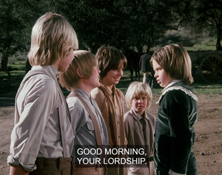 Laura (also smirking) says, “Come on, Little Lord Fauntleroy.”