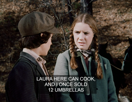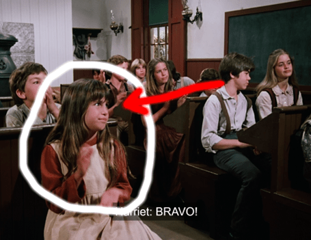 Re: the girl implied to be Not-Linda-Hunt’s older sister; when I first saw her I thought that was actually NLH aka Marie herself, having gone through a grow spurt in-between seasons. But then I remember when I saw Marie in following seasons and she was still fairly small compared to the taller girl (do you suppose they were related in real-life?). There’s one moment with this sister of Marie’s that stuck in my mind, when Mrs. Oleson is talking to Nellie about her gift and showering her with compliments, at which “Marie’s sister” rolls her eyes in contempt, implying she’s quite familiar with the Oleson women’s snobbery and Harriet’s pompous attitude. Also, her smile as she laughs at Mrs. O’s troubles with the lone could give Laura’s a run for her money.