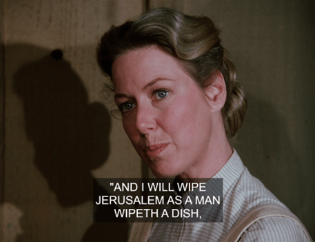 Like Pa, I don’t doubt Ma’s knowledge of the text. Probably she pictures the mush crust on the plates as heathen hordes when she’s washing up, in fact. (Take that, Manasseh, King of Judah!)