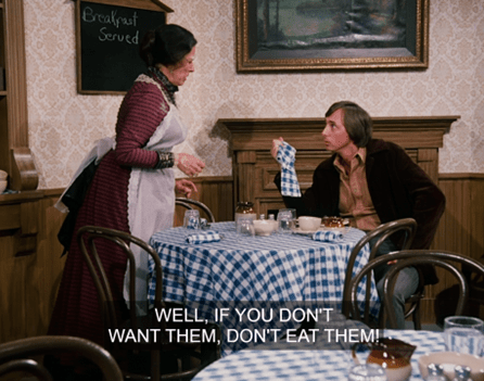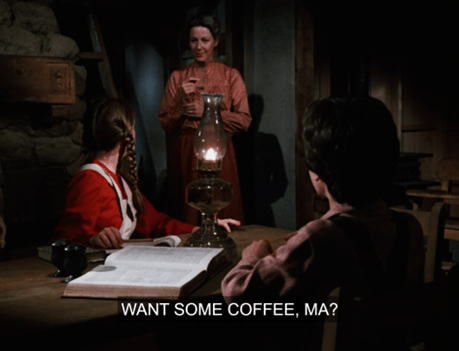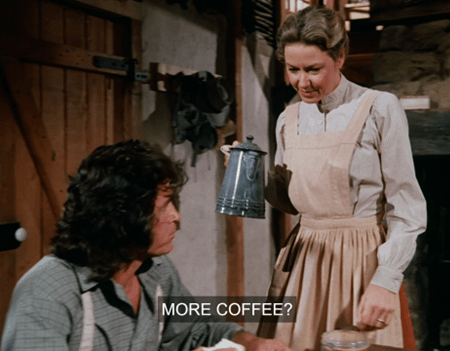 For Ma approaches Pa at the breakfast table and says (all together now), “More coffee?”