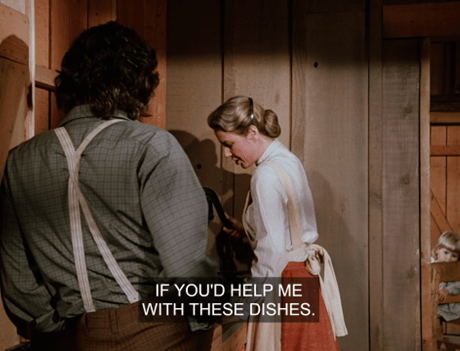 Pa says that’s “not a man’s work,” but Ma notes that in the Bible God says, “And I will wipe Jerusalem as a man wipeth a dish.” (Second Kings 21:13.)