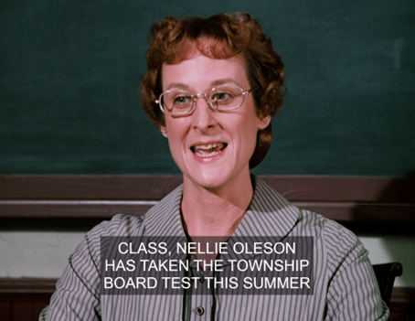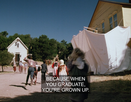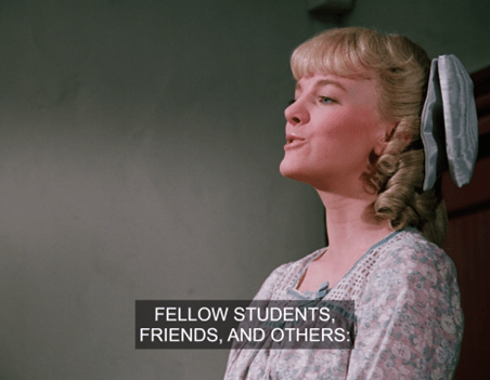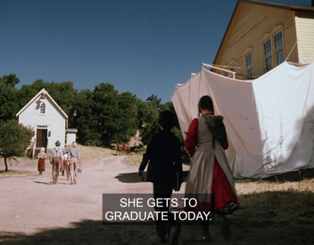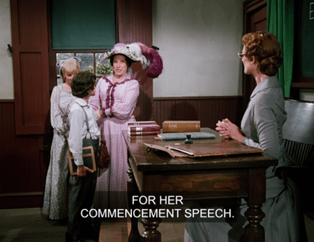 Mrs. Oleson says she’s brought Nellie so she can deliver her “commencement speech.”