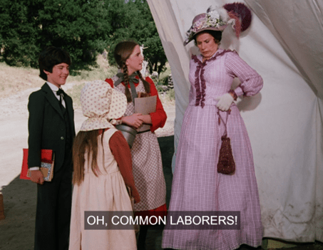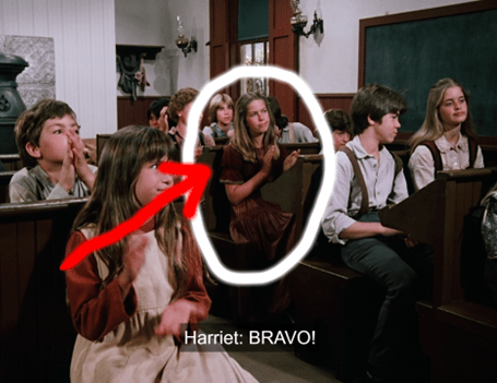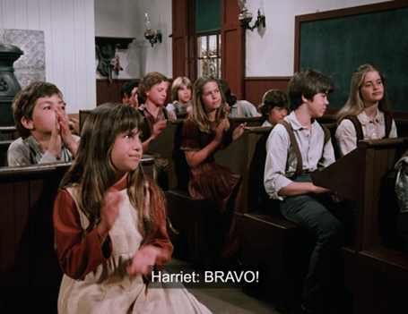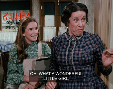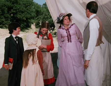 But she’s immediately interrupted by the arrival of Harriet Oleson and her children.