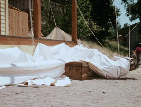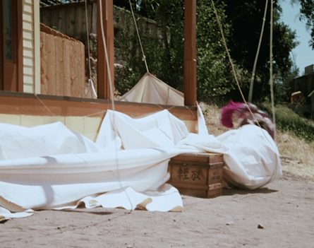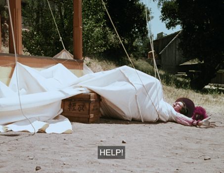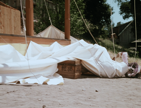 Then she screams instructions to the “common laborers” working behind the sheet (ha!).