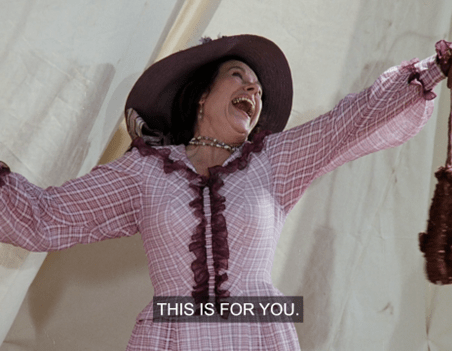 And the last thing we see is ol’ Gopher Fangs, laughing her head off on the porch.