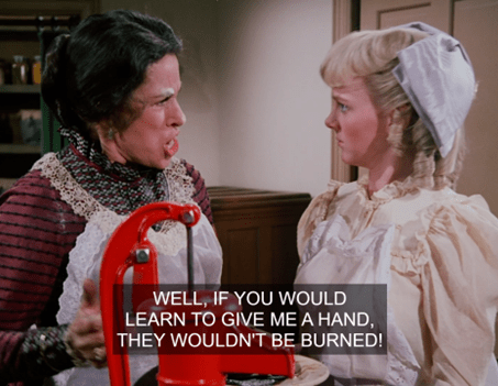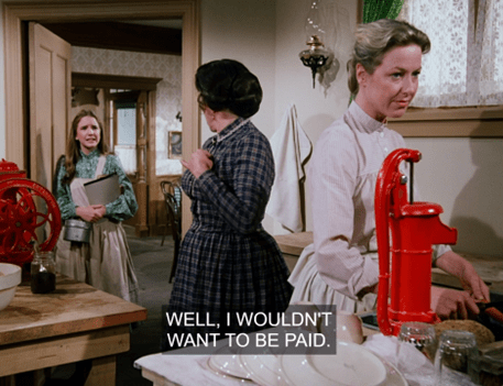 Then we cut to Mrs. Oleson begging Caroline to break her rule and work on a Sunday to cook the dinner for Nellie and Zaldamo’s date.