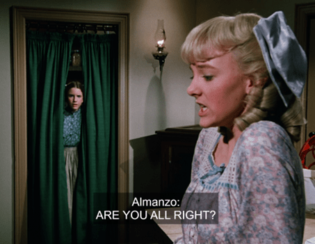 Katherine MacGregor and Alison Arngrim both get “guest star” credits on this one, so surely we’re in for a treat. (As if you didn’t already know that, you sophisticated Little House on the Prairie Fan, you!)