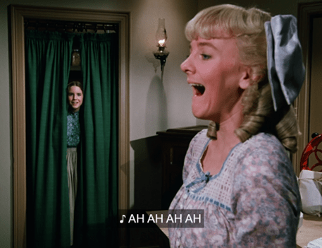 Almanzo is alarmed, but Nellie pretends she’s just singing, and launches into some ghastly coloratura runs.