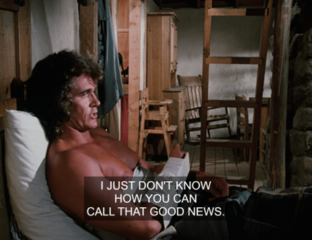 And yes, I agree with you about the Laura/Manly stuff. I’m trying to keep an open mind in the spirit of The Project, though. After all, I’ve been surprised before by elements of the show I’ve “always disliked” that I find charming as a middle-aged person (Toby Noe, e.g.).