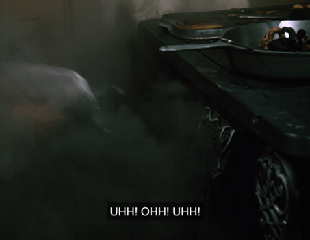 We then hear terrifying screaming and crashing from the kitchen. It really sounds an awful lot like the scene in The Exorcist where Ellen Burstyn runs in and finds all of Regan’s records and stuff flying around in the bedroom.