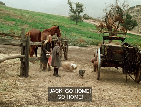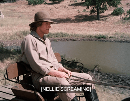 But the barn door opens to admit Bandit, and it’s clear Laura is actually just hiding out there.