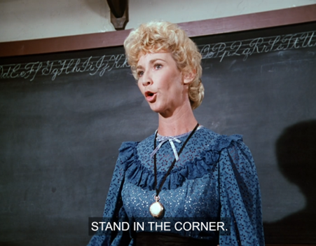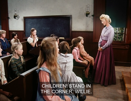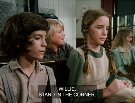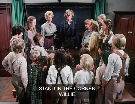Before we can find out where Ma’s going, we cut to the classroom, where Willie is standing in the corner. Clearly this two-parter can’t get enough of putting Willie in the corner.
