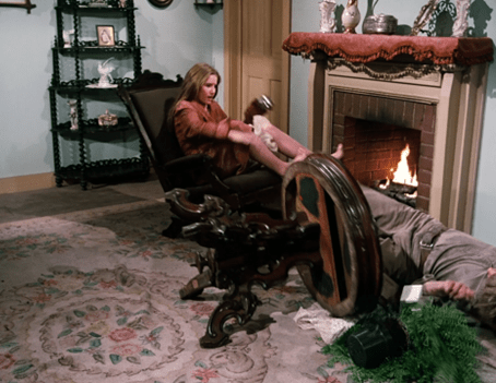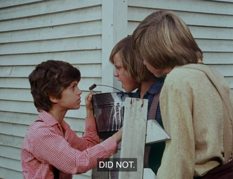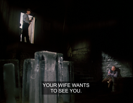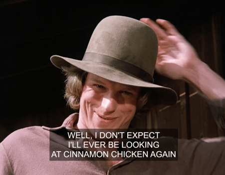 The camera retreats outside, but we can still hear this hilarious little piece of dialogue: