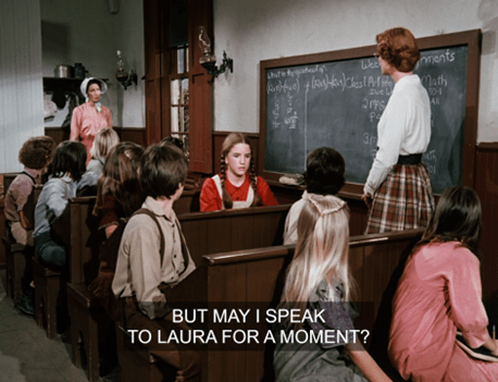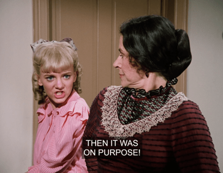 Ma gives Mrs. O a look, but she knows she isn’t serious and says, “Laura will be appropriately punished, Mrs. Oleson.”