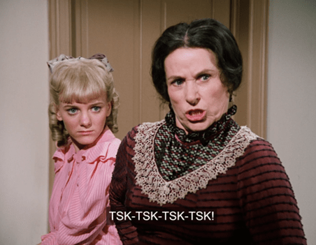 Mrs. Oleson gasps theatrically, then tsks her tongue about a dozen times.