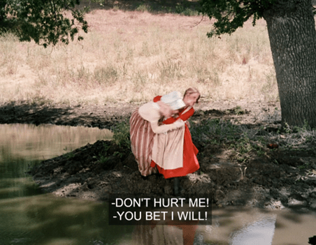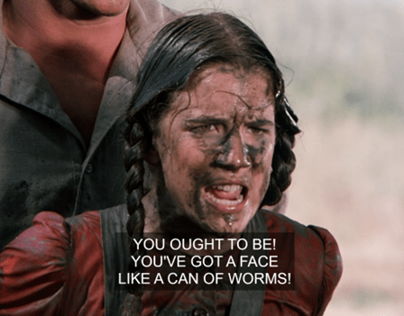 “What a cruel thing to do!” she says. “If you were my child, I’d have you horsewhipped, young lady!”