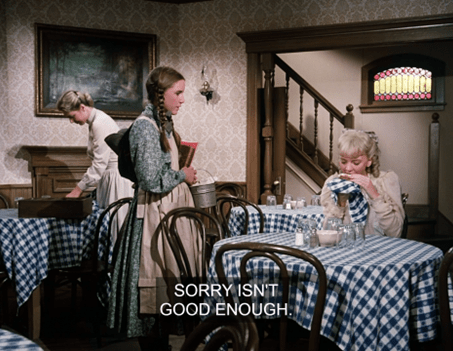 Laura says, “Ma wanted me to march right over to Almanzo’s to apologize, like a baby.”