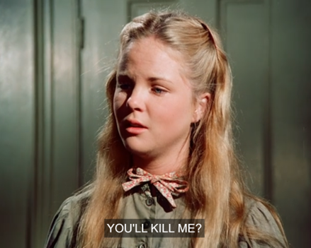 THE VERDICT: I love this one. Wild and a little ludicrous, “The Third Miracle” is a crucible, or fondue pot if you prefer, in which some of the best Little House elements are melded perfectly. The first half is so dippy and innocuous, with its “bee-plot B-plot” and all the silly banter about the speech, then it suddenly lurches like a cartwheeling stagecoach into suspense/horror territory. A personal favorite.