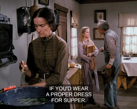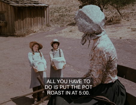 Ma tells Laura to watch Grace and “put the pot roast in at five.” Five seems late to start a dish that takes hours to cook. What time do they eat in this house? I thought they all went to bed at, like, eight. I suppose it could be for tomorrow, though.