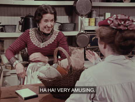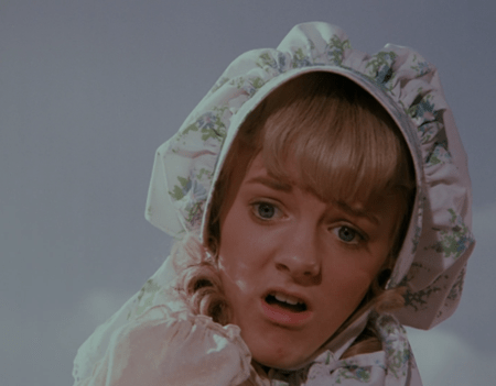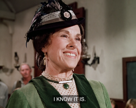 Unusually, Mrs. Oleson wears a traditional bonnet rather than a hat in the bee scene.