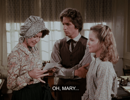 Once she goes blind and we get Adam in the mix, I find the “uh oh Kendall drama” theme gets more play, but the young Mary theme is still brought out from time to time. In fact, for Mary and Adam’s final scene as regular characters, we get this really emotionally-charged mix of both themes as Mary bids adieu to Hester-Sue, Laura, Pa, and Ma, then it we get the upbeat version of the Kendall theme before they ride out of town to one last triumphant arrangement of the young Mary theme. It’s just awesome because hearing it calls you back to so many classic Mary moments. It’s like a flashback montage without the flashbacks – if you’re a regular viewer, the music is all you need to remember every scene.