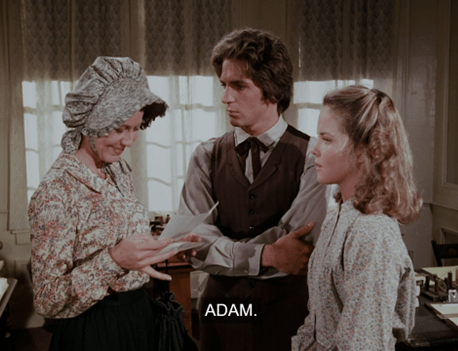 Mrs. Foster gives Caroline the, uh, telegraph, saying it’s for Adam and is good news. Seems unethical, but you know – Walnut Grove.
