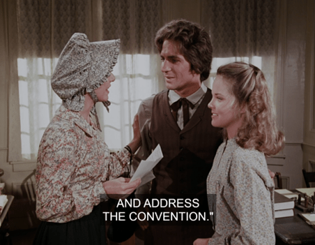Outside, Ma has fired up the Chonkywagon again, but Mrs. F comes rushing out to give her the telegram, or “telegraph,” as telegrams are always called in the Little House TV Universe.