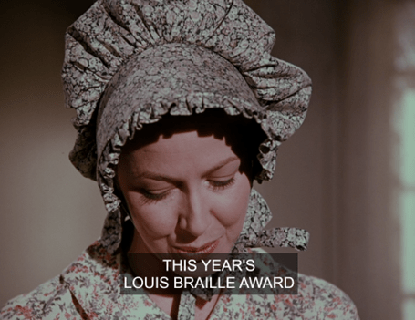 However, there definitely was no Louis Braille Award at that time I’m the United States. There are a number of them now, but as we noted when we did “‘I’ll Be Waving as You Drive Away,’” braille wasn’t widely accepted as a written language here until the early Twentieth Century. (Interestingly, it was used in Missouri, which is where Hester-Sue’s school was.)