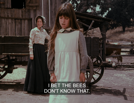 Carrie slurps that Laura and Albert won’t let her, er, bee-keep, and Ma tells her that, as a child, she’d surely get stung.
