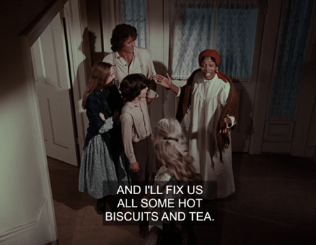 Original Mary Theme – I like to think of it as “Young Mary’s Theme,” and reiterating what I said above, it was used pretty regularly throughout the first four seasons. It probably plays at least once in every episode, but of course, the Mary-focused stories feature it all throughout in various arrangements reflecting our favorite nerd’s moods. “Whisper Country” is a good one for it. The episode starts right off with a very sweet, cheery version of it as she excitedly runs out of school to tell Ma and Pa about the teaching job. Then, when she and Rev. Alden ride into Willow Prairie, we get it in an ever-so-slightly less cheery, more “let’s see what happens” version (because now we know that there’s a Miss Peel who’s about to make shit difficult), and that version practically melts into a more suspenseful version as we get a good look at the creepy kids and Caleb Fisher. Then, after the first Mary/Peel scene, we get a tense version so as to say, “And this, folks, is our conflict.” Later, when Mary walks into the empty schoolhouse, we get it in those great high-pitched 70s horror movie strings that remind me so much of the score from “Carrie,” especially paired with the “cross” imagery from the window. It’s just such an awesome use of music to me, it’s like the theme gets beaten and worn down scene by scene just like Mary herself does.