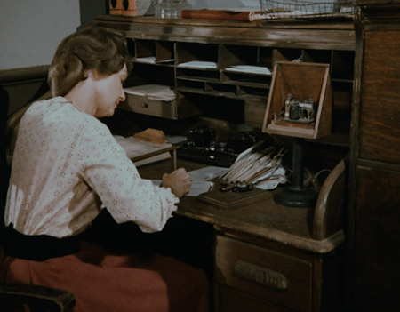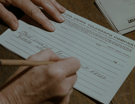 We shift gears again, then, cutting to Mrs. Foster transcribing telegrams in the Post Office.