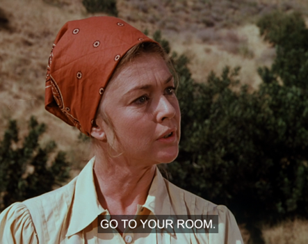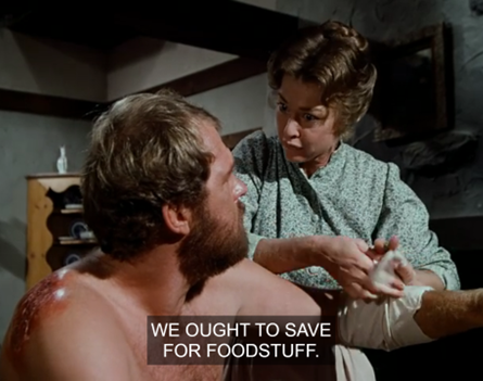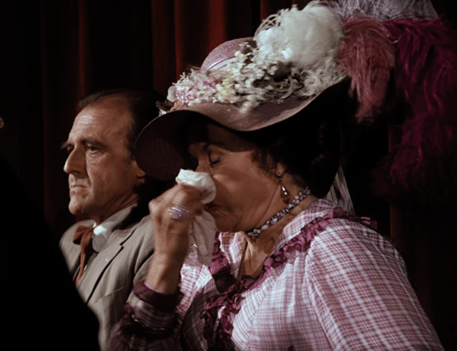 Harriet Oleson, as always the epitome of elegance, blows her nose, then wipes the used hankie all over her face.