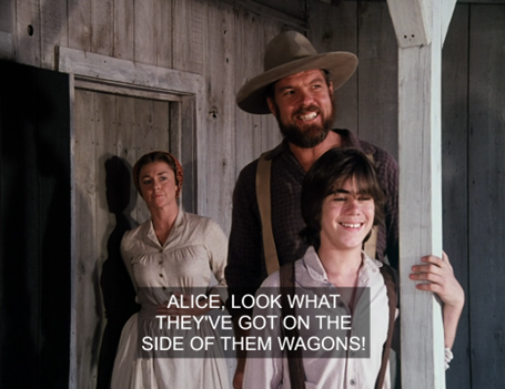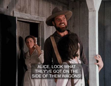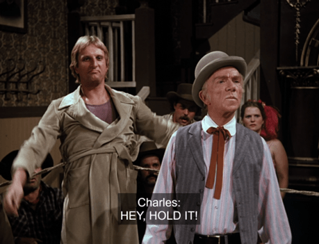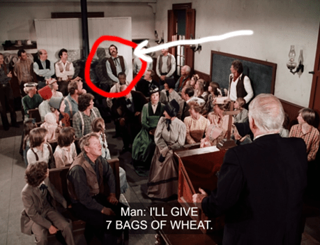 “Hey, hold it!” cries out a voice of sanity from the crowd – you guessed it, Charles Ingalls.