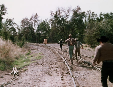 (It’s worth noting, the buckboard comes into town via what appears to be a new-cut road north of the bridge? An express bypass, I expect.)