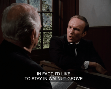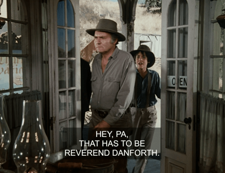DAGNY: Yeah. [as REV. DANFORTH:] “Wait . . . are you that guy that works at the Mill in Walnut Grove?