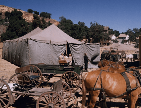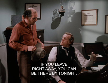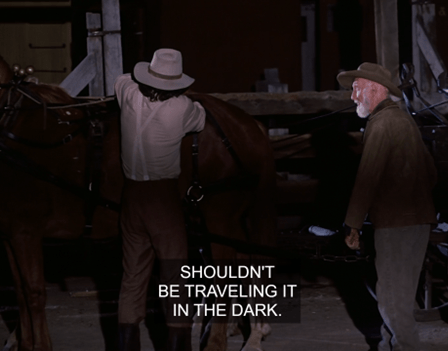 Outside, the driver of the wagon, who looks like he could place in a Doc Baker-impersonator pageant, is crying, “God be with ya, God be with ya!”