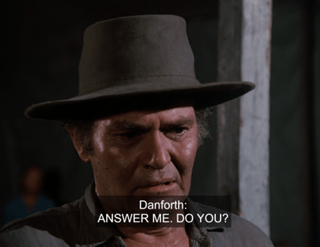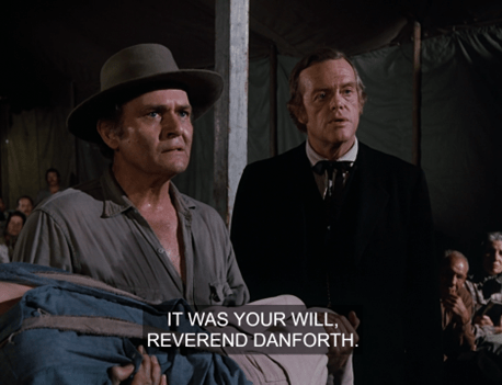 Obviously taken aback, Danforth says, “I know you not,” and Charles steps forward and says, “Perhaps you know me, Reverend.”