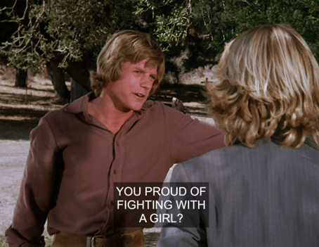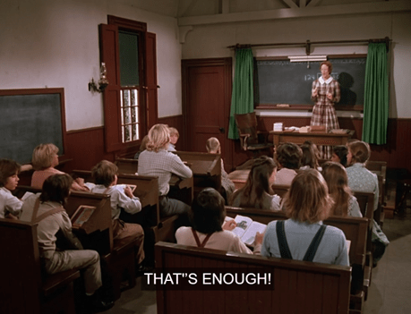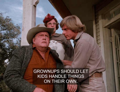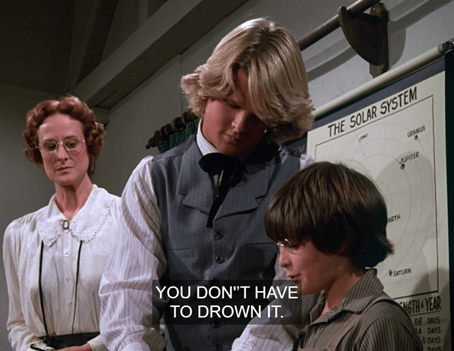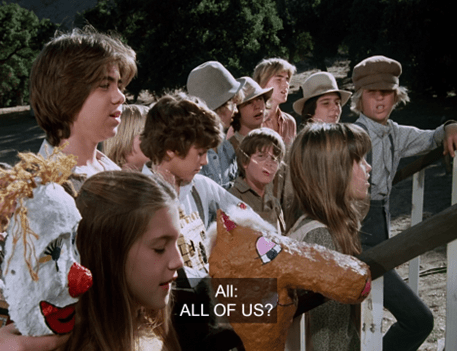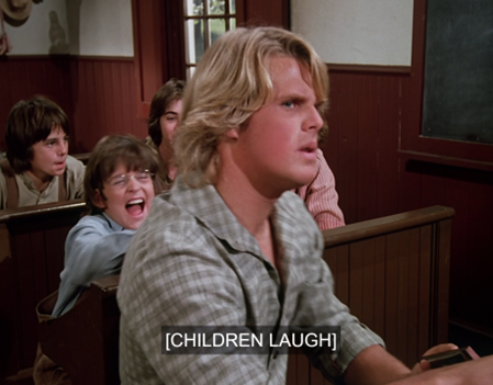 The kids encircle the bully. I think you can see Melissa Gilbert trying not to laugh, but I’ll give her the benefit of the doubt.