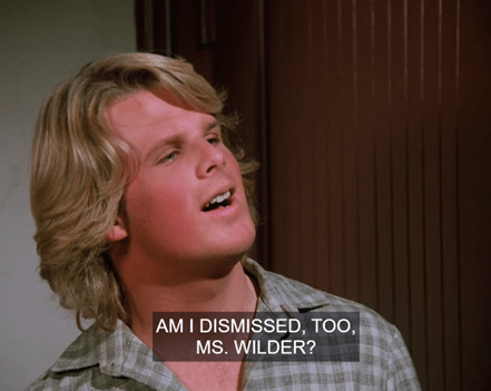 (Or maybe it’s “Doogs”? Didn’t Doogie Howser get called that sometimes? Could that in fact have been a nickname for John T. Dugan, who included it in this script as a joke? It might be his calling card as a writer! I’ll have to go back and rewatch his episodes again to see if any other “Doogses” get mentioned.)