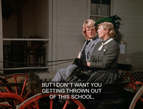 In the buggy, Mrs. Slater tells Bartholomew he better not get kicked out of this school like he did the last one.