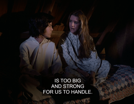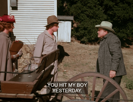 Regarding the conflicting tone between the lighthearted sequences of Laura and Albert’s schemes to stop Bart Slater and the dramatic, grounded moments where Eliza Jane is powerless and humiliated being forced out of her position through no fault of her own, it reminds me of something I noticed watching Anne With an E: the show has some light-hearted moments, almost idyllic, involving Anne’s imaginative personality and friendships, and with lessons and themes akin to a younger audience, but its tone often shifts to a grounded, cynical approach as it shows the darker elements of the period and place it’s set in, particularly in flashbacks of Anne’s abusive foster homes, where it seems the tone changed to an almost different genre. I’ve seen moments like this in Little House, but for the most part, it seems to balance between dark portrayals of the dangers and difficulties of the 1800’s, with child mortality, disease and deadly winters, with an otherwise light-hearted, idealistic approach suitable for kids. One moment I noticed a brusque shift in tone was when, in “Ma’s Holiday”, Charles and Caroline are introduced to an old lady with a tragic story of losing her daughters to a fire and being rendered insane and convinced that they’re still around somewhere. The moment is used to further fuel Caroline’s worry about the girls back home in an otherwise comical storyline, but its tone at that one point feels straightforward and serious, like a sudden shift not unlike the flashbacks to Anne’s foster homes in the Netflix show. It could just be a morbidly comical moment, as you once described, but I think it’s a the show zigzagging between its dark, realism and its kid-friendly tone, and not always succeeding at being seamless about it.