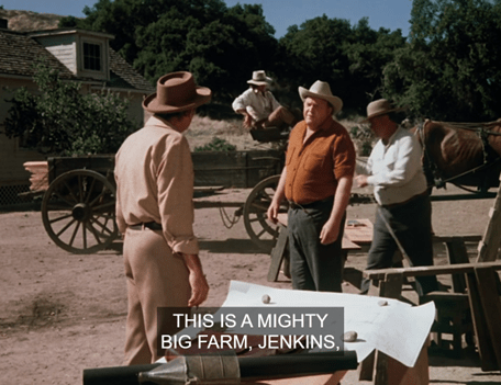 Slater mentions he sold a huge farm in Wisconsin before coming here and wants this one to be even huger. (You’ll recall Jud Lar[r]abee was a large-scale farmer of both wheat and sheep.)