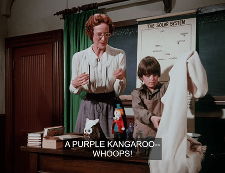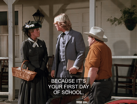 Next we see Eliza Jane enrolling Bartholomew in school. “I hope you do better here than at your last school, Bartholomew,” she says pointedly.