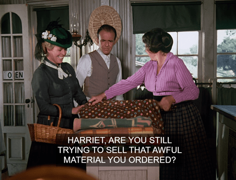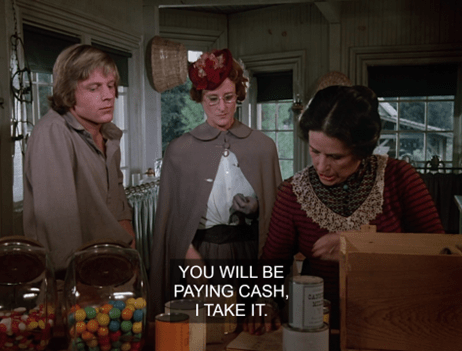 (Although, it does amuse me that when Pa says “cash on the barrel” it’s great advice, but when Mrs. Oleson does the same thing we hate her for it.)