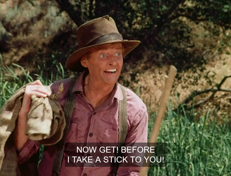 Anyways, as Old Man Potts is talking, we see a small hand reach from behind him to swipe his pipe, but he notices too late.