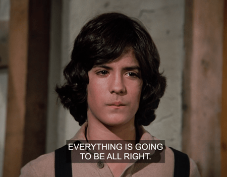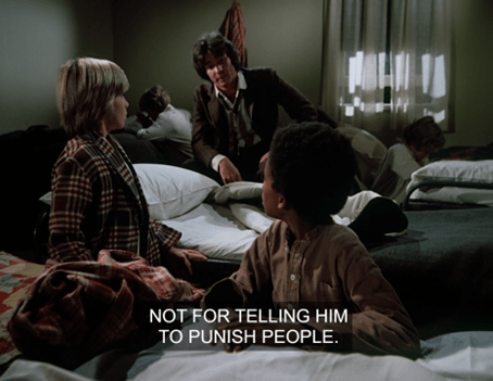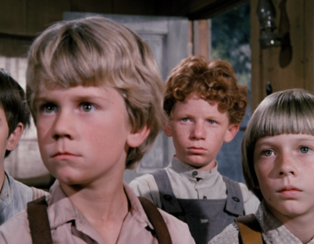 The haystack-haired kid is identified in the credits as “Tim.” I guess this must be Tim Caper, who was one of the blind kids poor Mr. Ames searched for in the dust storm.